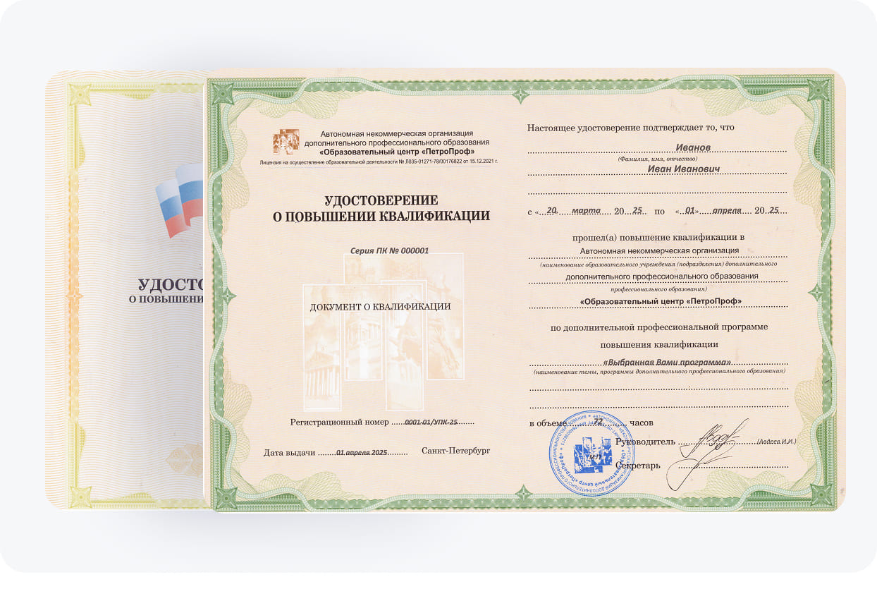 В обязательном порядке выпускники "ПетроПроф" проходят аттестацию. Она необходима для подтверждения приобретенных умений, знаний и компетенций. При успешных итогах специалисты получают диплом, отражающий наличие профессионального образования и требуемых для ведения деятельности навыков. Этот документ действителен на территории всей страны.